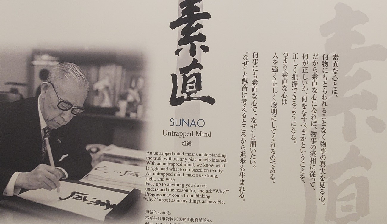 「素直な心とは、何事にもとらわれることなく物事の真実を見る心。だから素直な心になれば、物事の実相に従って何が正しいか、何をすべきかということを、正しく把握できるようになる。」